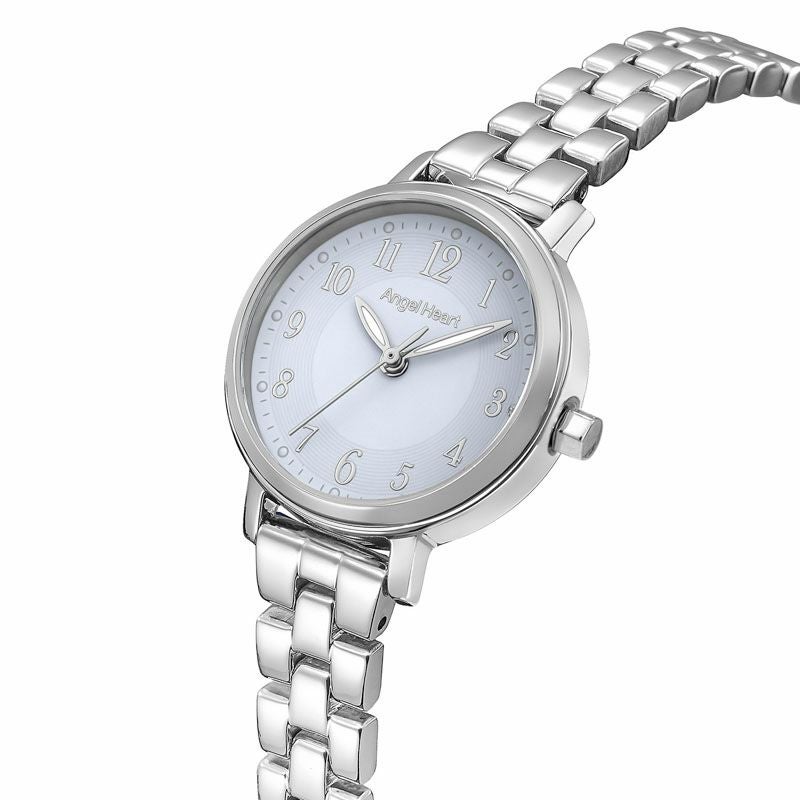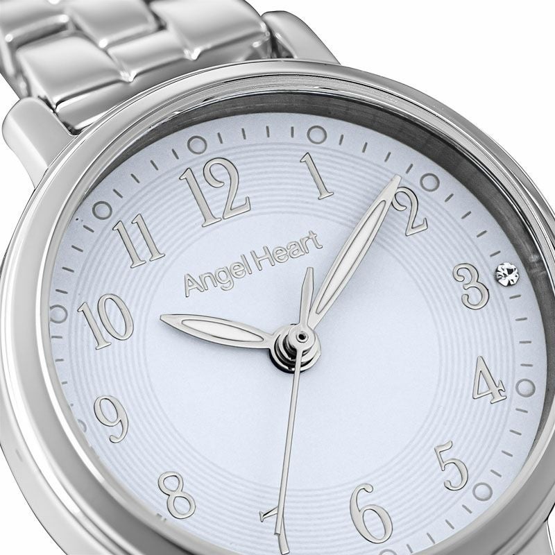1~12まで全てアラビア数字のインデックスを採用し、視認性の高いデザインがポイント。 3時位置にはクリスタルガラスを施し、シンプルなデザインの中にも可愛さを感じられる1本です。 シルバーカラーのブレスレットは洗練された雰囲気を演出し、でオフィススタイルにもマッチ。 オンオフ問わずご着用いただきやすいデザインです。