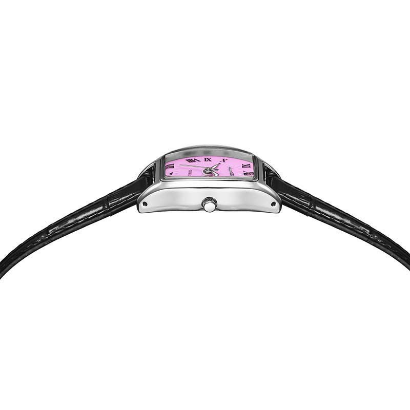 雑誌『CLUEL』とのコラボレーションウォッチが登場。 エンジェルハートらしいデザインとガーリーさはそのままに、クルーエルのキーカラーである『クルーエルピンク』を文字盤に落とし込みました。 クラシックな雰囲気のブラックレザーベルトに『クルーエルピンク』を合わせることで抜け感のあるレディなお洒落な手元を演出します。
