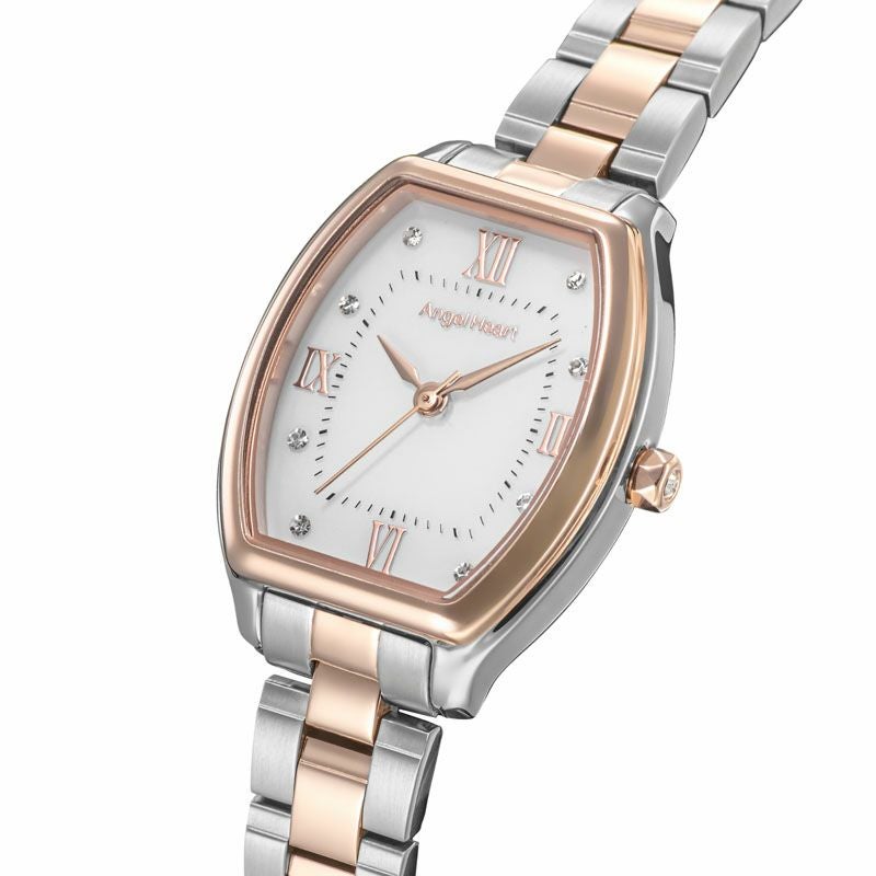 エレガントなトノー型が叶える洗練されたスタイルの『Innocent Time』シリーズが登場。 どんなアクセサリーにも自然に馴染むプレシャスゴールド(ピンクゴールド)×シルバーの絶妙なカラーバランスがとれたコンビモデル。 重ね付けを楽しむ方にも、アクセサリー選びに迷わない上品な仕上がりで、大切な方への贈り物にも最適です。 また機能面も充実。 時間が読み取りやすい、60メモリ付き。 さらに安心の「日本製ソーラームーブメント」を搭載しており、太陽光や室内の光で充電し、6ヶ月駆動します。 電池交換が不要で毎日快適にご着用いただけます。