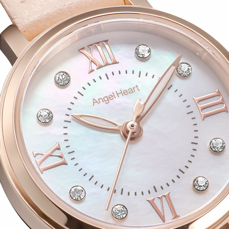 組み立ても日本国内で行う安心・安全の日本製シリーズ『SAKURA TIME』が登場。 ムーヴメントも日本製ソーラームーヴメントを採用しています。 シリーズ名の『SAKURA TIME』にちなんで、秒針にサクラの花びらのデザインを施しました。 毎秒時間を刻むたび、桜の花びらがかわいらしく動きます。 時間を読み取りやすいよう、60メモリ付き。 インデックスにはクリスタルを8石施し、お手元の動きに合わせて煌めきます。 ピンクベージュレザーは肌なじみが良く、上品でやわらかい雰囲気を演出します。 サイズ調整も不要のため、プレゼントにもおすすめです。 ※ご予約いただきました商品は5/15(木)から順次発送させていただきます。