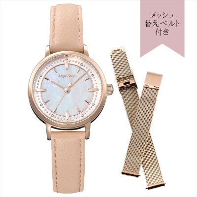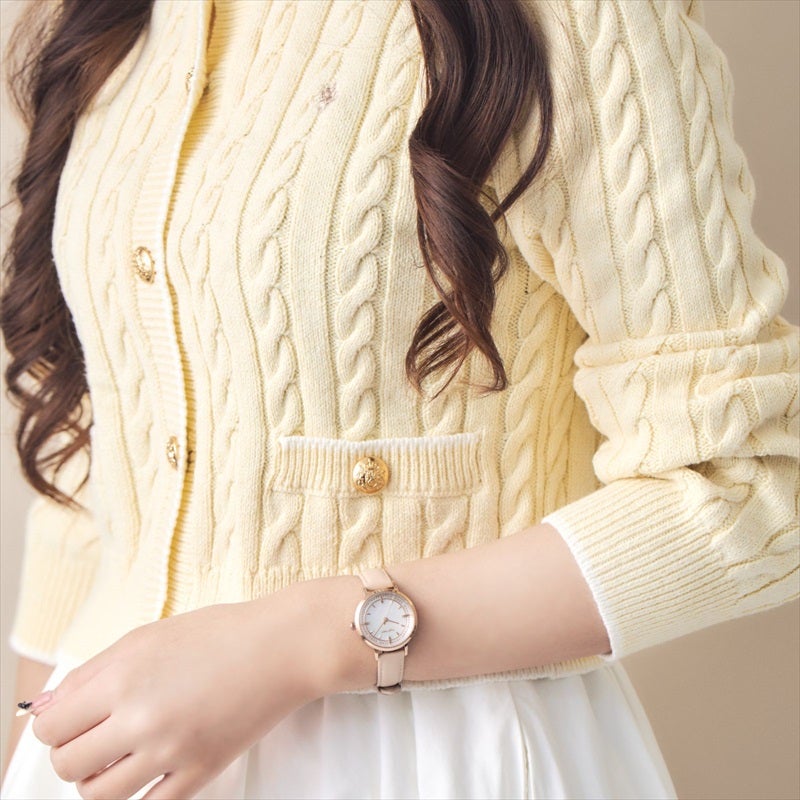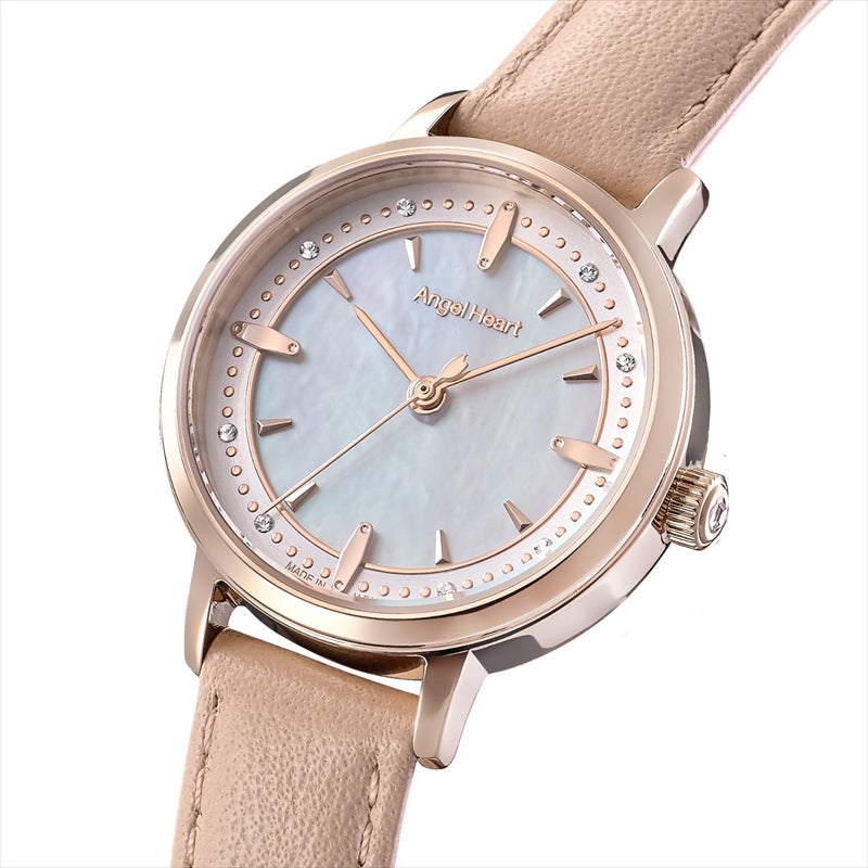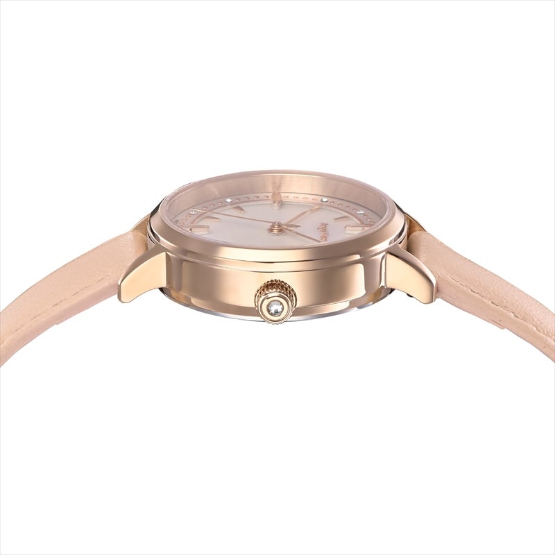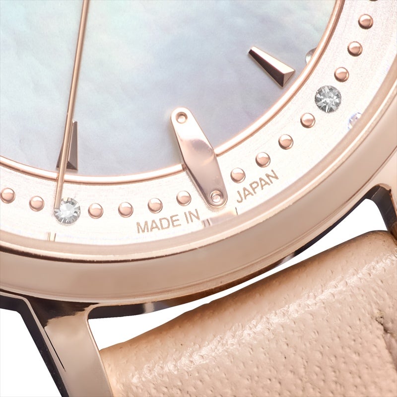 【日本製モデル SAKURA TIME】 日本製ムーヴメントはもちろんのこと、仕上がりに直結する組み立てまで日本国内で行う日本製モデル『SAKURA TIME』より、2026年春夏の最新作が登場。 やわらかなピンクベージュのレザーベルトと、繊細なディテールが映える文字盤を組み合わせた一本です。 肌なじみの良いカラーリングが手元を明るく見せ、フェミニンでやさしい印象を演出。 さりげなく取り入れたクリスタルが動くたびに上品なきらめきを添えます。 オンオフ問わず身につけやすく毎日のコーディネートにそっと寄り添う、長く愛用できるデザインです。