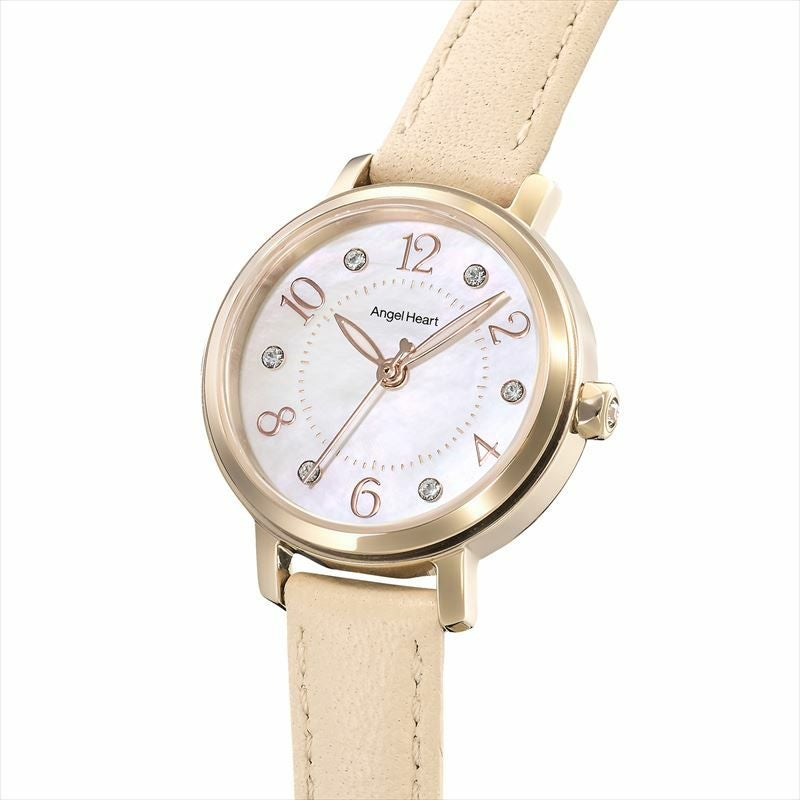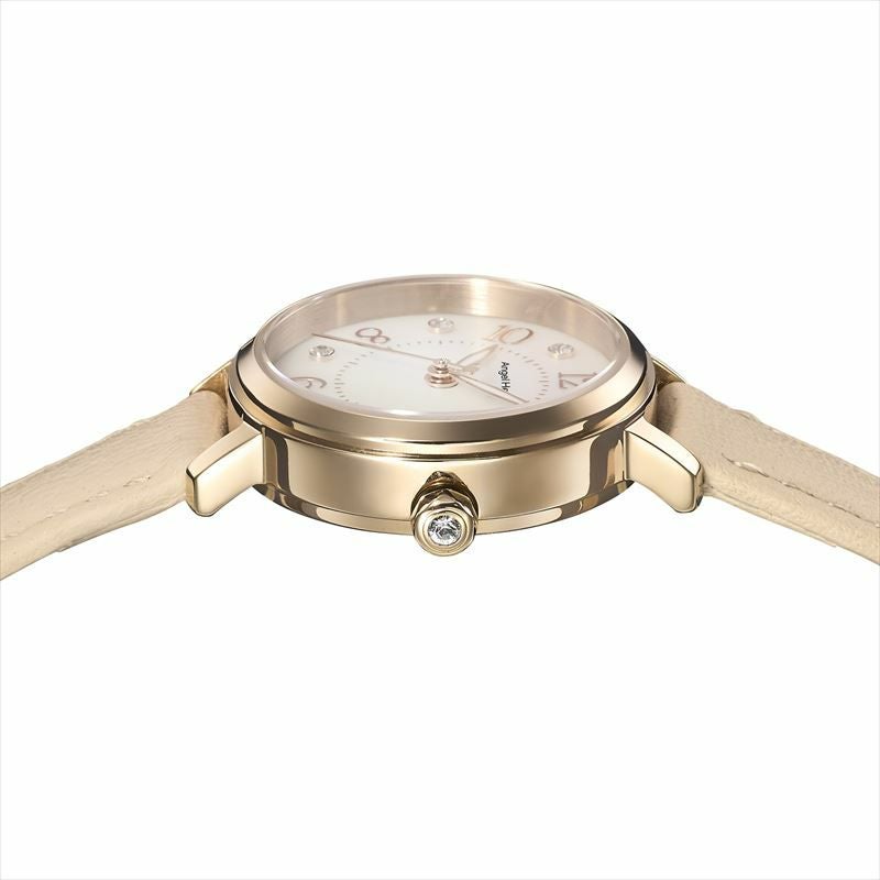 丸みをおびた数字とクリスタルの組み合わせが、優しい輝きで女性らしさを引き立てます。レザーベルトにステッチを施すことで、カジュアル感UP。肌なじみの良いピンク色のレザーベルトが手もとを華やかに彩ります。