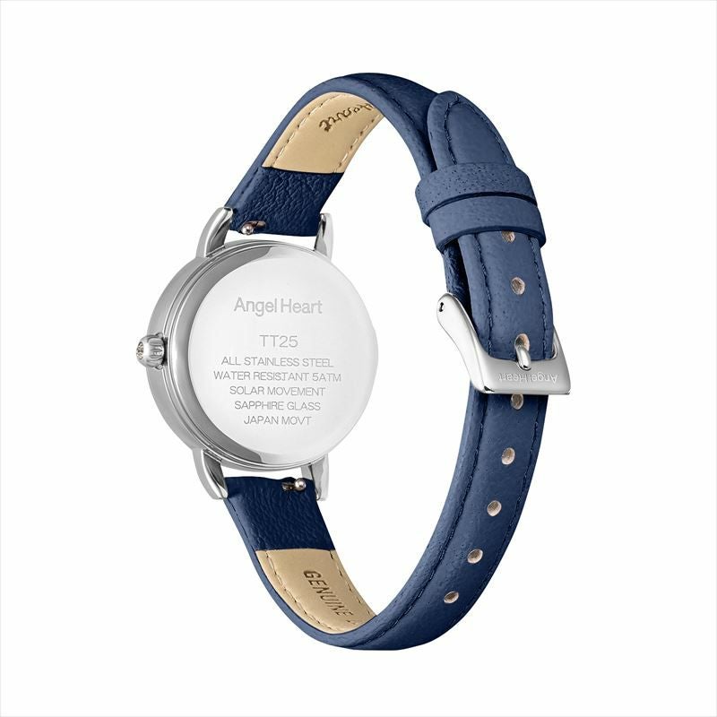 見やすさにこだわって作られたユニバーサルデザインフォントをインデックスに採用した視認性に優れたデザイン。 シンプルなデザインでありながら3時位置とリューズにクリスタルガラスをあしらい、エンジェルハートらしいワンポイントも。 ソーラー電池搭載のため電池交換の手間を軽減。 また、傷が付きづらいサファイアガラスを採用しており、安心して普段使いいただけます。