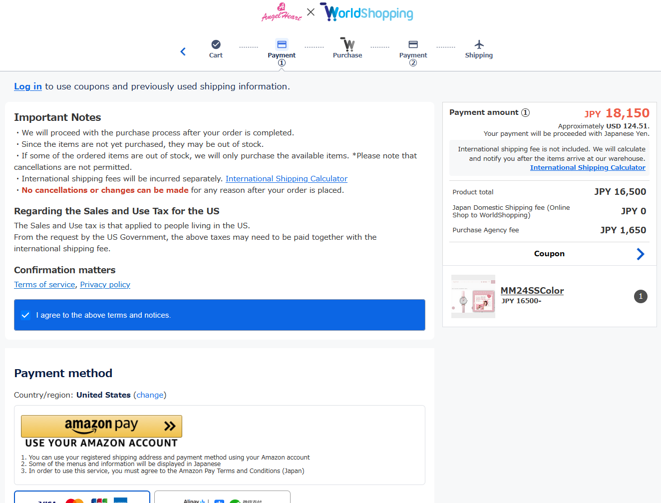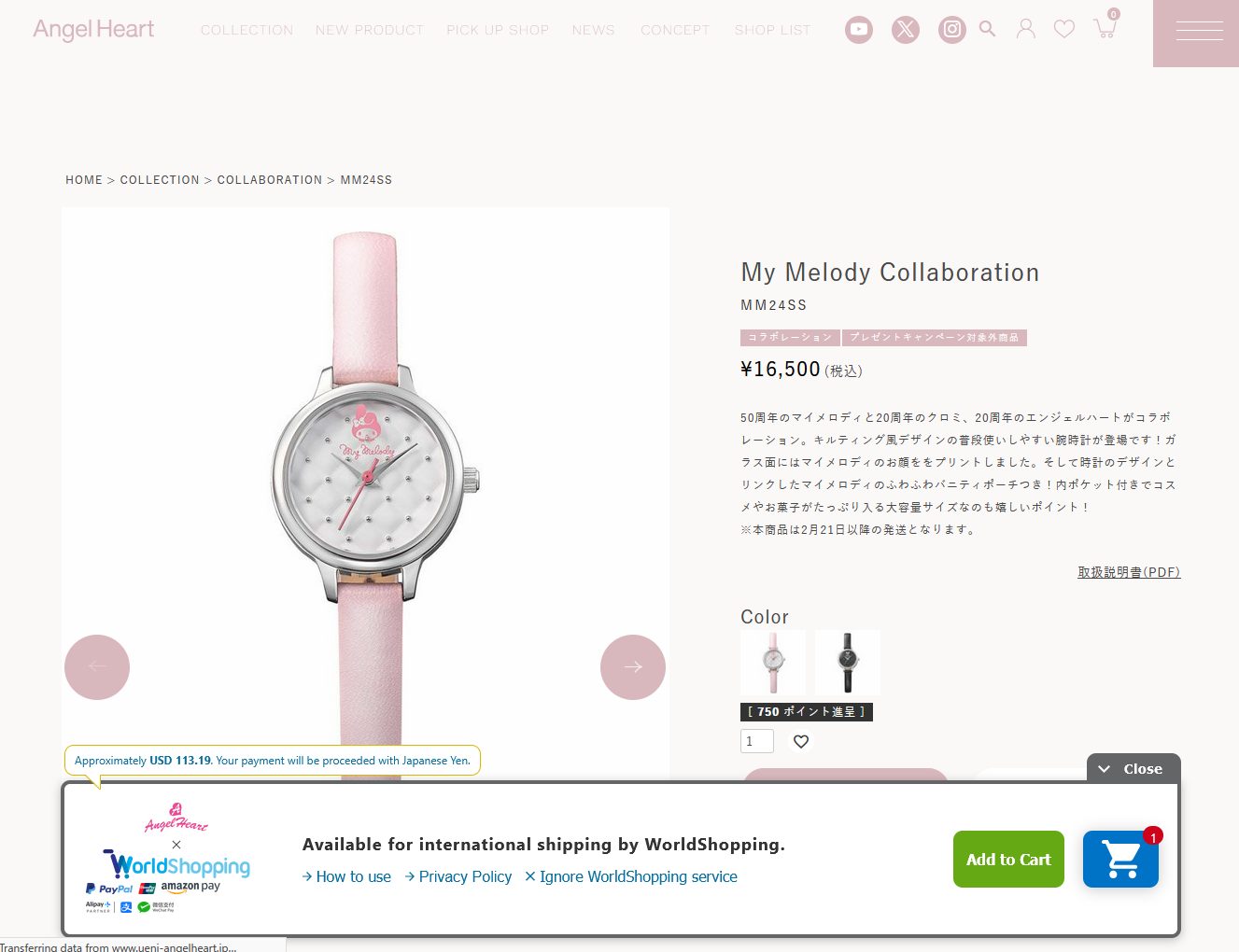 1.When you access the website from overseas, the “WorldShopping Cart” will be displayed automatically.