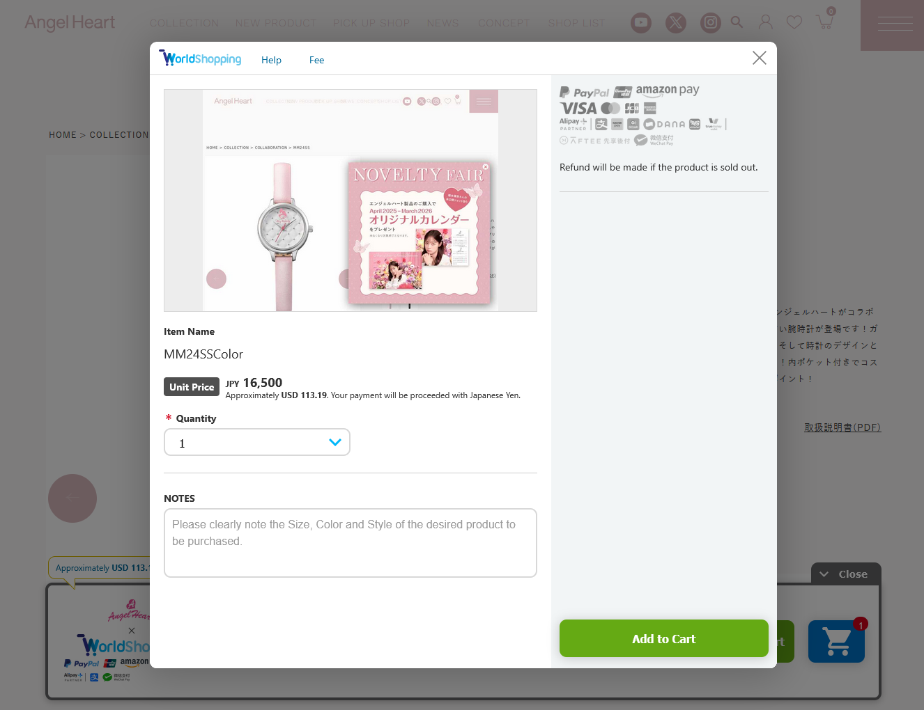 Click “Add to Cart” of the WorldShoppinng banner to proceed to buy your favorite items.
